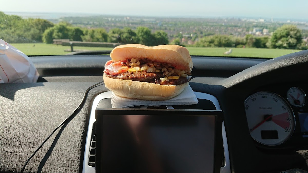 The best fast food burger joint: incredible value, stupendous portion sizes, stunning views and free parking. The staff are efficient and friendly, the way it's all run is excellent. You order, step aside and then your number is called. I'm a fairly big eater but I would have been defeated by the monster (3/4lb) burger. Thankfully the husband and I shared a monster, a portion of chips and a hot dog. All for £15 We didn't need the hotdog lol Soft chewy bun which was perfect with nicely cooked chopped onions. They give you plenty of sauce on the side so you can load it up how you please. The chips come in one size and are enough for 2-3 normal sized humans (~£4.50) Note: hot dog is actually a sausage not a processed American style frankfurter . Like a chippy sausage (this is a chippy after all). We didn't get drinks but lots of people around us did and they looked really nice, especially the hot chocolates. We would definitely come back if we were craving a fast food fix! The view at night-time is apparently beautiful with all the lights of the city.